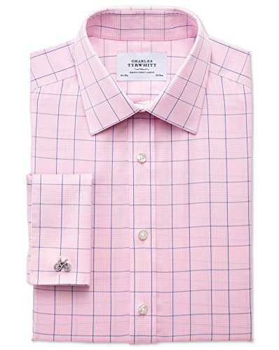 Best Seller! Charles Tyrwhitt Classic Fit Non-Iron Prince Of Wales Check Pink and Blue Cotton Formal Shirt Size 18/35 Review
